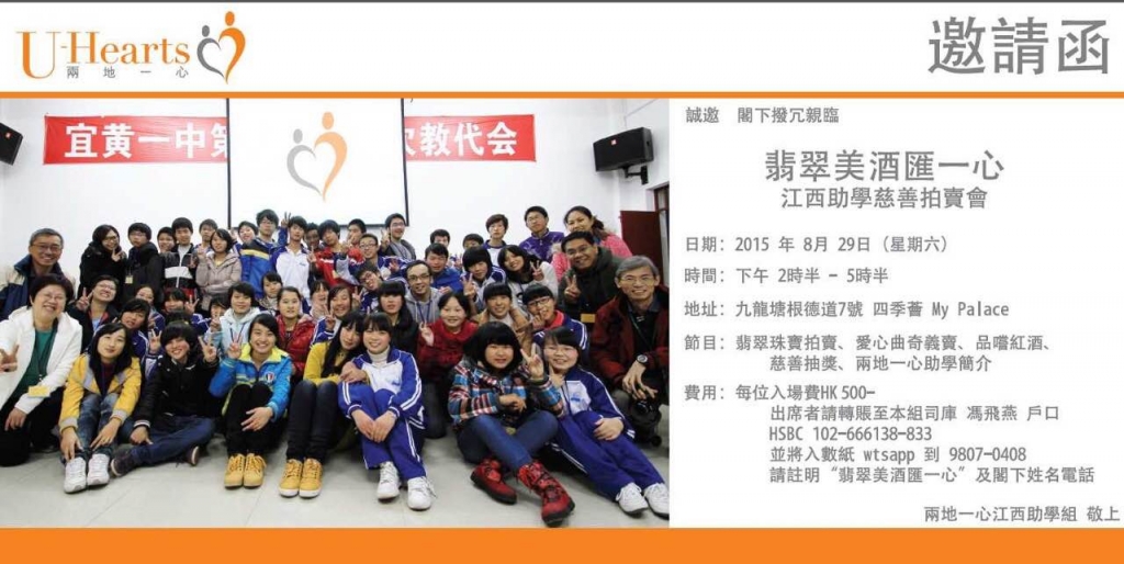"翡翠美酒滙一心"江西助學慈善拍賣會 (2015年8月29日) - 本會活動 - U-HEARTS 兩地一心
