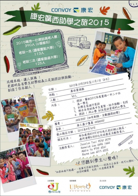 團費: 港幣1,800 ( 如有剩餘,全數撥捐助學。)