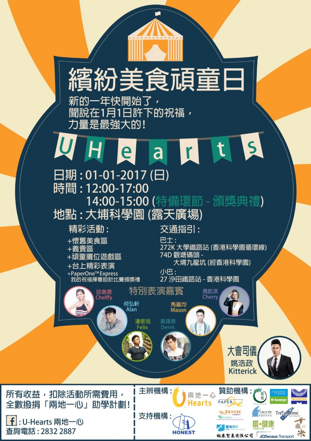 內容: 懷舊美食、慈善義賣、繽紛遊藝區、台上表演、新年祝福、紀念品贈送、大抽獎等