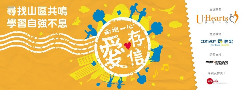 由「兩地一心」主辦的大型公益宣傳活動《兩地一心‧愛‧存信》明信片投寄活動已全面展開,希望藉內地山區學生的成長和求學故事,鼓勵本港學生培養堅毅不屈 的精神,促進兩地學生之交流,讓他們彼此學習並互相勉勵,促進個人成長。現在只要讚好 (like) 本facebook專頁 www.facebook.com/uhearts.dreamcard, 將粉絲數目推至超過8000人 (8000 likes), 「兩地一心」就會送出10套字典 (漢英及英漢) 給是次探訪選出的10位廣西山區學生 (每人一套)。請鼓勵身邊親朋好友一同到facebook專頁讚好,讓山區學生有多一個學習機會!